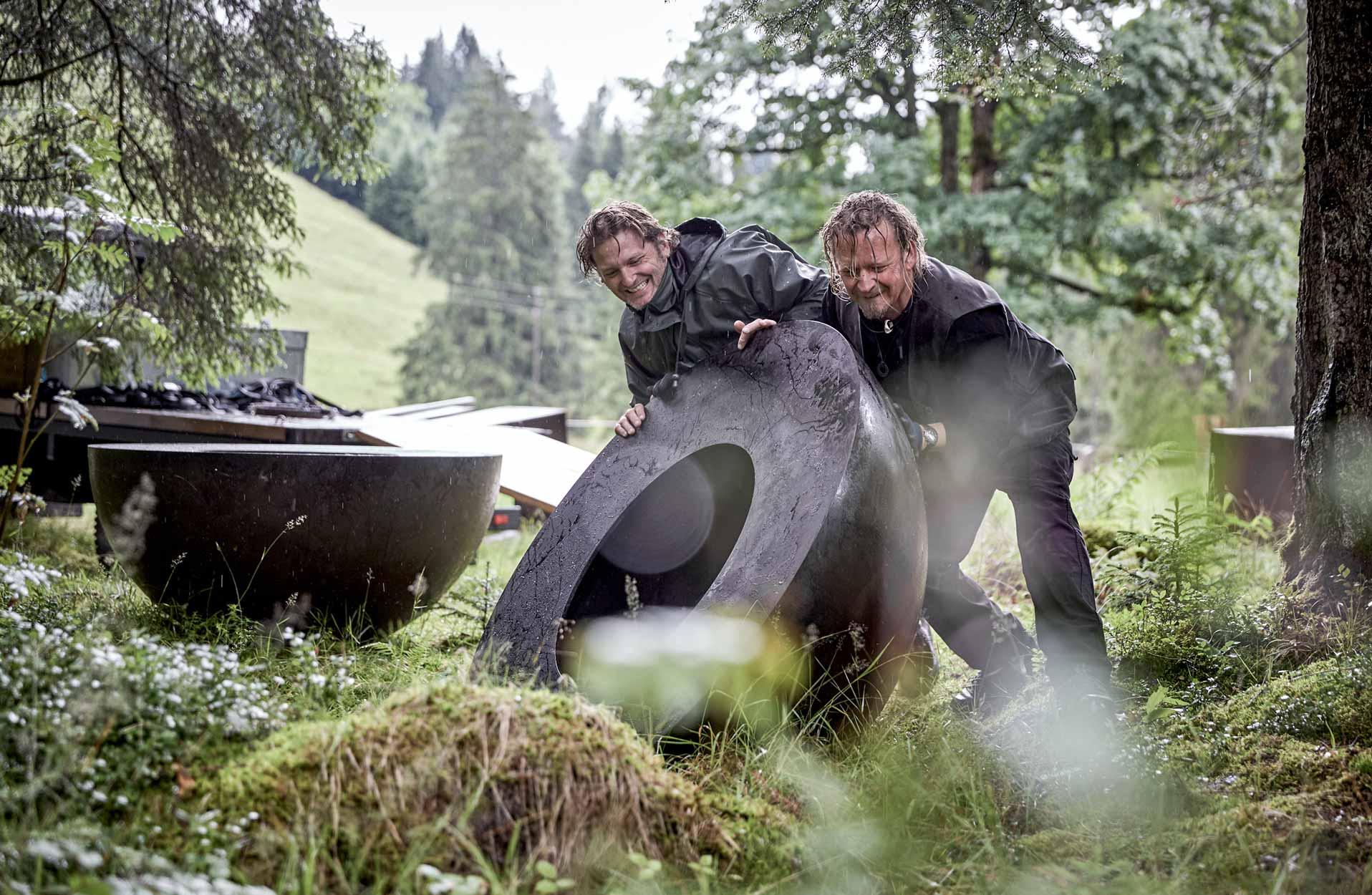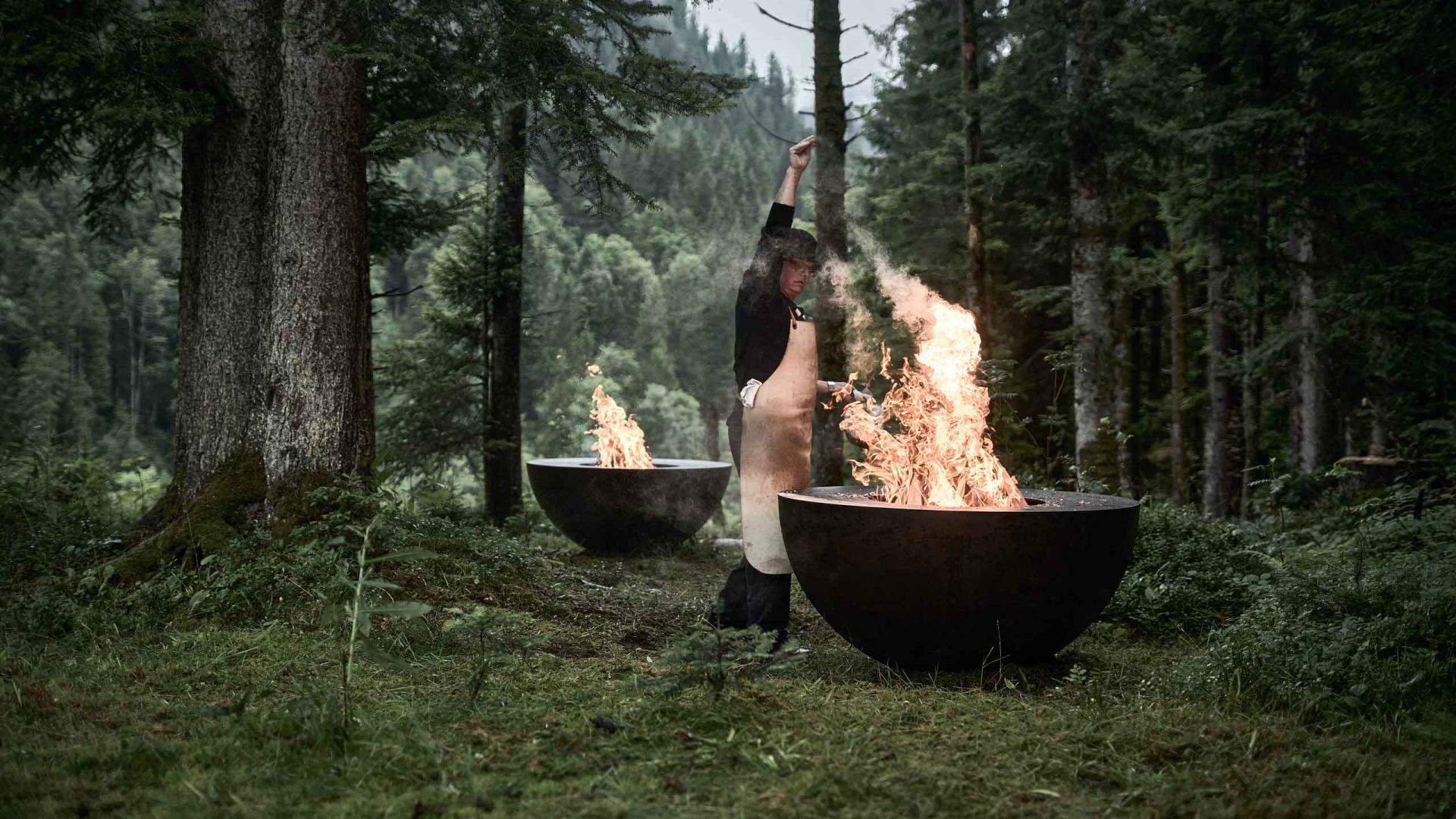 Andreas. Er schuf ihn. Beate. Sie machte ihn bekannt. Den Feuerring. Meisterstück der Stahlplastik. Universalwerkzeug der Grillierkunst. Epochaler Markenaufbau. Der eine zaubert Butter Pemmikan, Feuerfisch, Konfitüre vom Feuerbusch und gargeräucherte Wurst vom schwarzen Ayam-Cemani-Huhn. Der andere brät Spiegelei. Einer trommelt. Andere befeuern ihn. Alle sitzen drumherum.