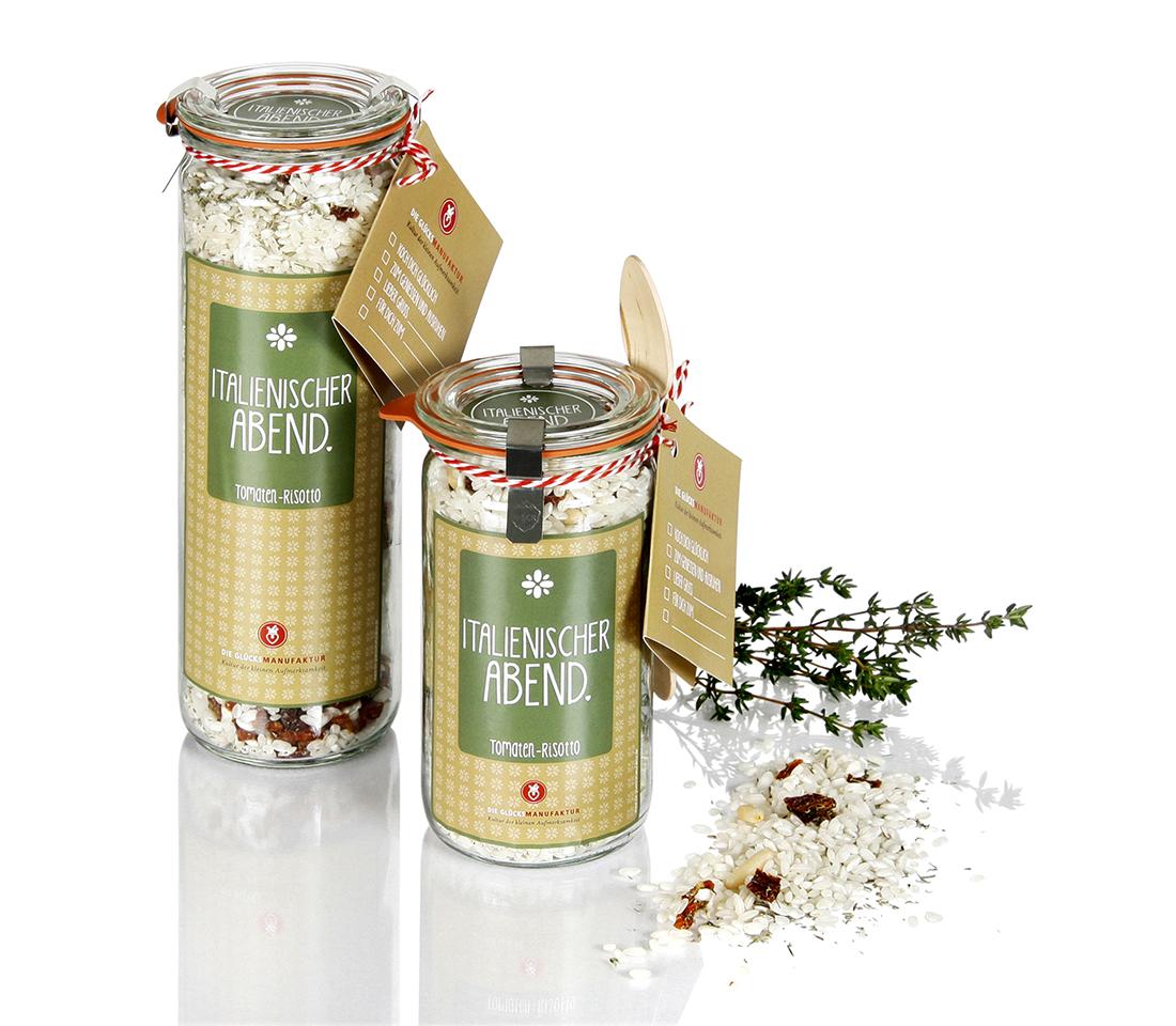 Kuchen backen ist immer so ein Risengedöns. Zutaten kaufen, rumschmieren, aufräumen und dann ist 3/4 vom Kuchen übrig. Für kleine Glücksmomente ohne Backärgernisse sorgen die in Weckgläsern ausgebackenen Minikuchen mit zauberhaften Namen wie »Bodensee Kuchen« oder »Mitbewohner Kuchen«. Oder »Einfach so Kuchen«. Die Backfee Claudia Groezinger startete mit Minikuchen, jetzt erschafft sie zudem Risotto »Italienischer Abend«, Milchreis »Zauber Reis« und Schokoladenfondue. Alles im Weckglas. Nimmersatte bestellen das GLÜCKSMANUFAKTUR Kuchen-Abonnement.